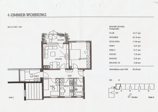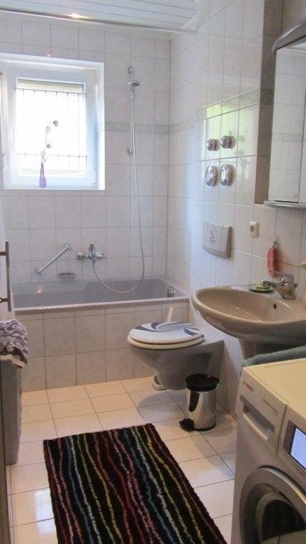 Bad mit Wanne, Fenster und Waschmaschinenplatz; Großes Elternschlafzimmer; 2 x Kinderzimmer; Küche mit Einbaumöbel; großes Wohnzimmer mit Balkontüre und Treppe in den eigenen Garten; Carport; zwei Kellerräume;