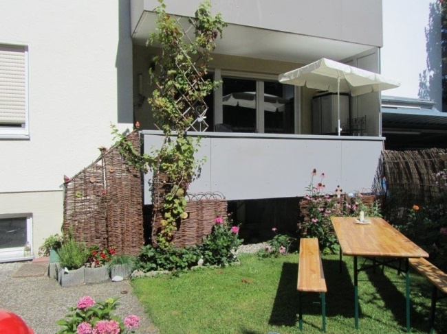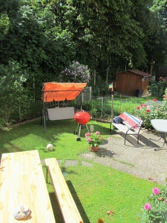 Eigener, eingezäunter Garten mit Rasen und Pflasterfläche, Balkon mit Treppe in den Garten, Außenwasseranschluss; Carport; Zimmer mit Laminatböden.