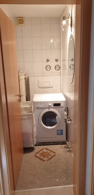 Das separate WC wurde demontiert und der Raum wird als Waschraum mit Waschmaschine genutzt kann aber wieder als WC zurückgebaut werden.