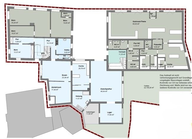 Für die Richtigkeit unserer Angaben übernehmen wir keine Haftung. Wir versichern jedoch, dieses Angebot nach bestem Wissen und den uns übermittelten Angaben erstellt zu haben. Der Grundrissplan ist zur Maßentnahme nicht geeignet.