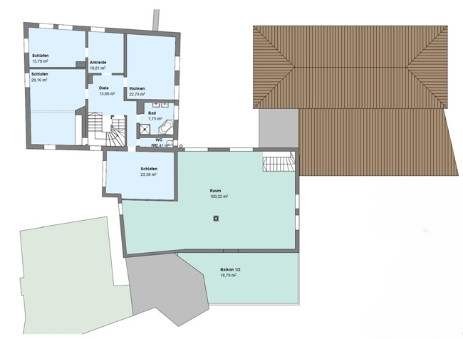 Das Haus bietet auf Grund seiner Größe und der noch nicht ausgebauten Flächen die Möglichkeit, noch weiteren Wohnraum zu schaffen und evtl. mehrere Wohnungen zu bilden.