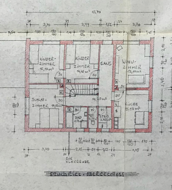 Durch die Hanglage gibt es auf der Straßenseite im Untergeschoss Wohnräume die evtl. auch als Einliegerwohnung oder Homeoffice genutzt werden könnten. 1980 wurde die Garage überbaut. Ansonsten ist das Haus weitgehend im unrenovierten Originalzustand.