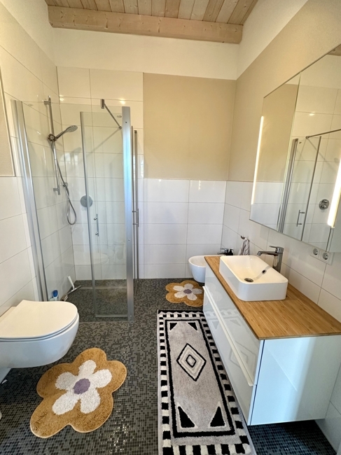 - Modernes Hauptbad mit Wanne, großer Dusche und WC