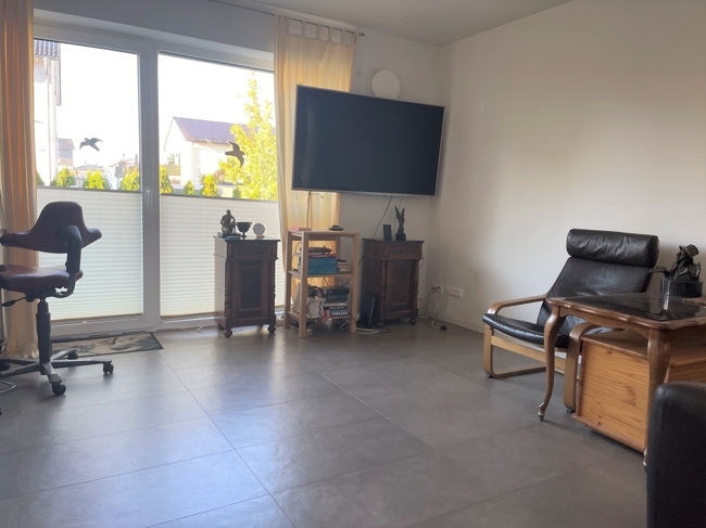 Eingang, offenes Treppenhaus, Gäste WC, großer Wohnraum mit Wohnzimmer, Esszimmer, offener Einbauküche mit Theke (optional), Terrassentüre auf die große, überdachte Terrasse, Handgefertigter Kachelofen mit Warmasserunterstützung und großer Glastüre; Durchgang möglich zur ersten Einliegerwohnung die momentan nur von Außen mit separater Eingangstüre erschlossen ist. Es gibt ein Abgetrenntes Bad mit Wohnraum und Küchenzeile (optional), elektrische Schließanlage, Südbalkon.