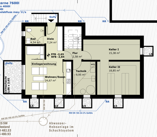 Technikraum, Sauna mit Dusche, Kellerraum, möglich Durchgang in die zweite Einliegerwohnung: