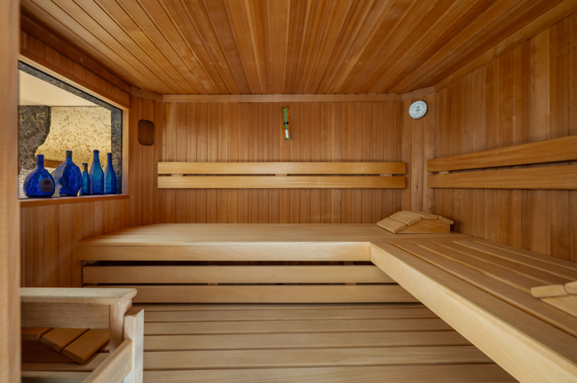 Wellness Bereich mit Bad, Whirlpool, Sauna und Dusche auf Gartenniveau