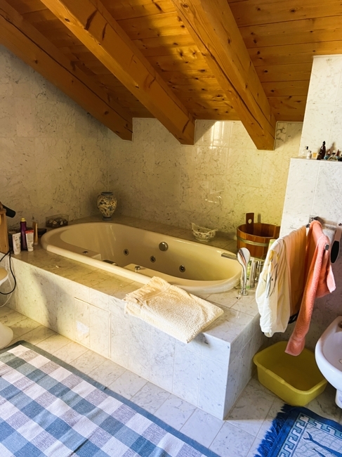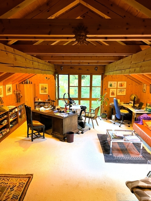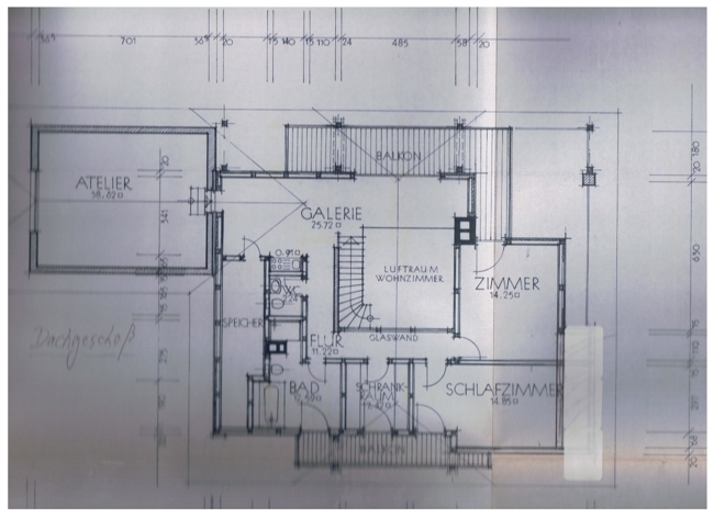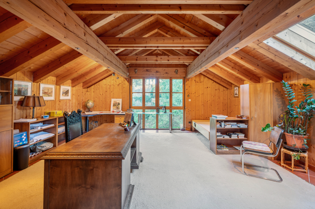 Große Galerie mit Westbalkon, großes Atelier, separates WC, großes Badezimmer mit Dusche Badewanne und Balkontüre, 3 weitere Zimmer in verschiedenen Größen.