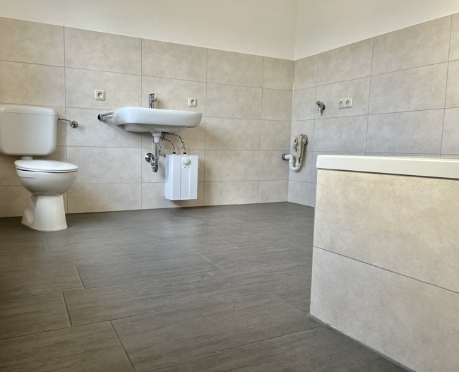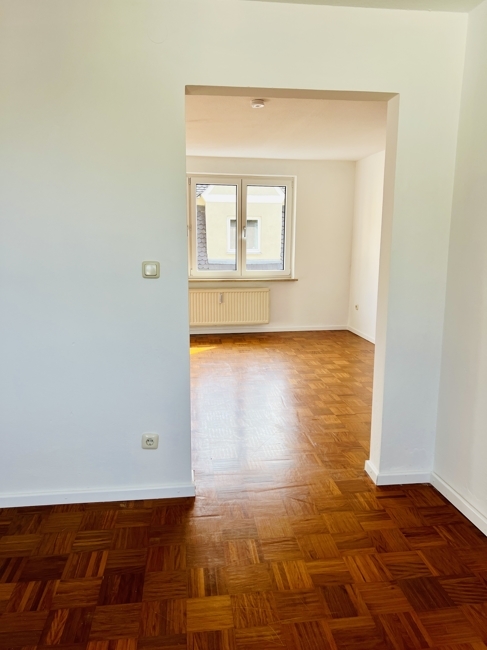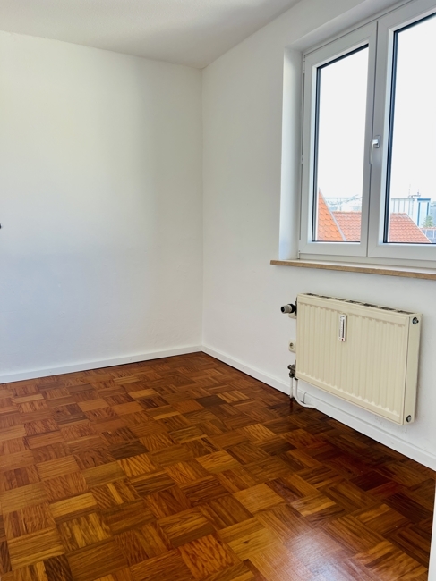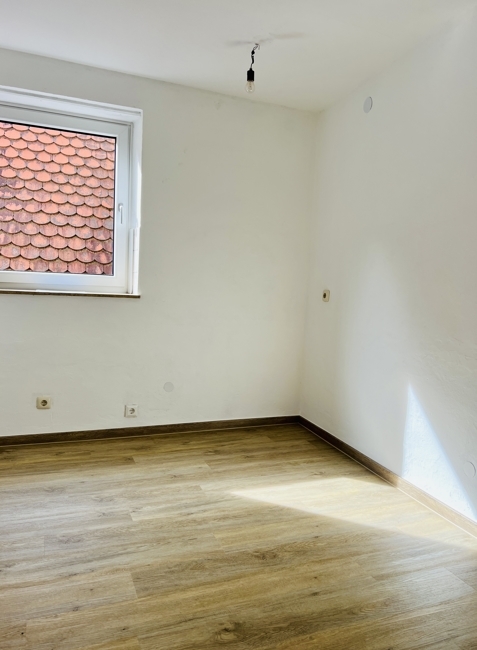 In die Wohnung gelangt man über eine überdachte Außentreppe im Innenhof. In der Wohnung gibt es ein großes, neu renoviertes Bad mit Wanne, WC, Waschbecken, Waschmaschinenanschluss sowie großem Fenster. Es gibt eine separarte Küche sowie mehrere Zimmer in unterschiedlichen Größen. Die Wohnung erstreckt sich über zwei Etagen mit innenliegender Treppe. Die Wohnung ist frei und frisch renoviert. Die Fenster wurden 2023 erst in moderne Kunststofffenster getauscht.