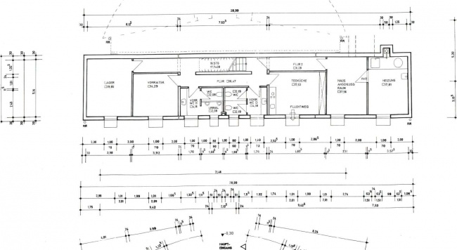 254m² Bürofläche 173m² Lager 426m² Gesamtfläche 1.431m² Grundstück Repräsentativer Eingangsbereich, verglaste Halle. Zwei Empfangs- bzw. Büroräume mit eigenem Eingang (separat vermietbar). Sechs Büroräume: Variable Größe durch flexible Schrank-Raumteiler. Untergeschoss: Hanglage, teilweise Tageslicht. Teeküche, Heizraum, Server-Raum, getrennte Toiletten für Männer und Frauen. Vier Lagerräume.