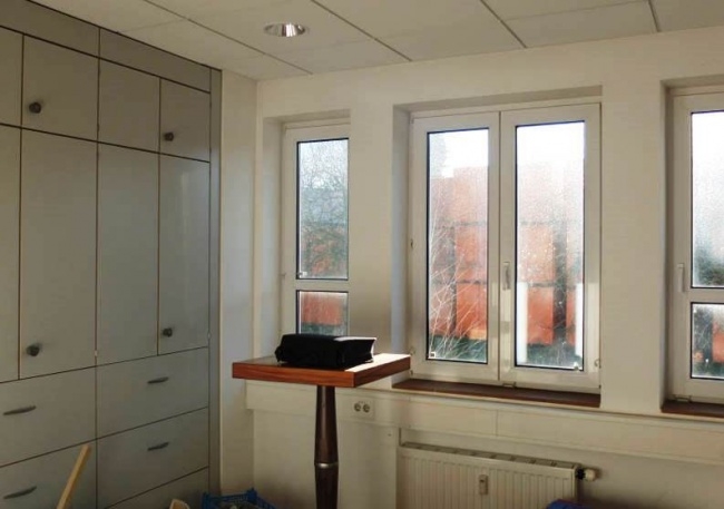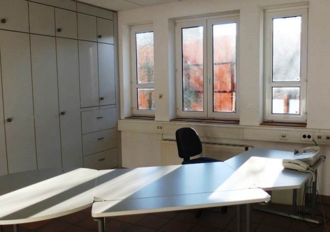 Fenster an Südseite mit Sonnenschutz. Fliesenboden. Einbauschränke. Rollregal-Lager für 3000 Ordner. Photovoltaik Anlage (April 2012, 24,5 KW) optional.