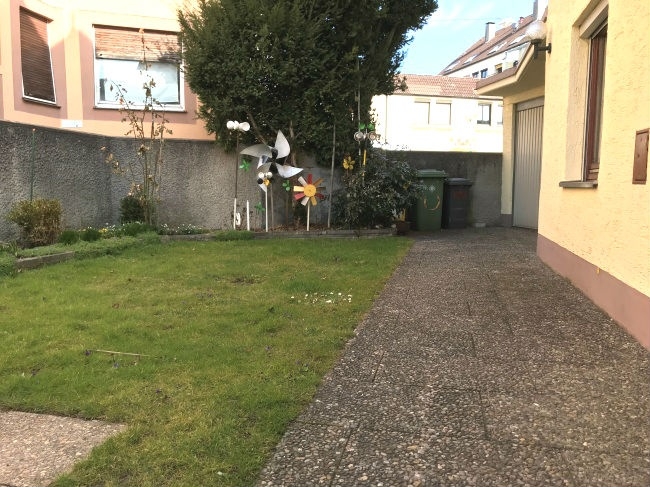 Es gibt einen kleinen Garten und eine Garage mit direktem Hauszugang.