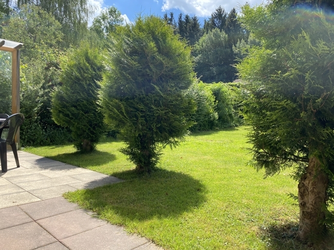 Die Doppelhaushälfte wurde im Jahr 1991 bezogen und ist voll unterkellert. Der Garten ist nach Süden ausgerichtet und bietet einen wunderschönen Blick auf Büsche, Bäume und Wälder ideal für die große Familie mit Kindern, Naturliebhabern oder Hundebesitzer.