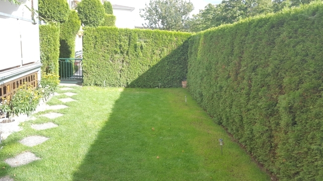 Der Eigene Garten ist mit einer Hecke eingewachsen und hat ein eigenes Gartentürchen.