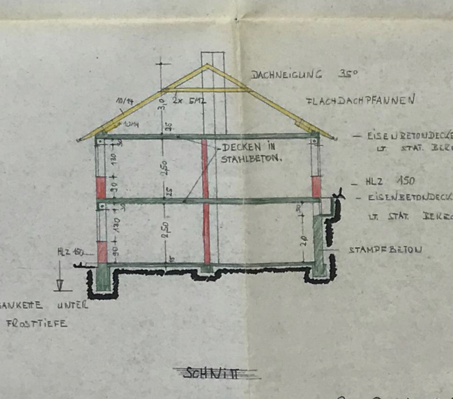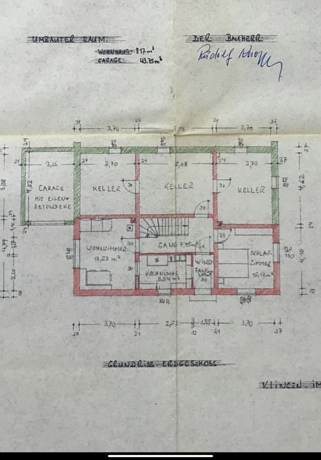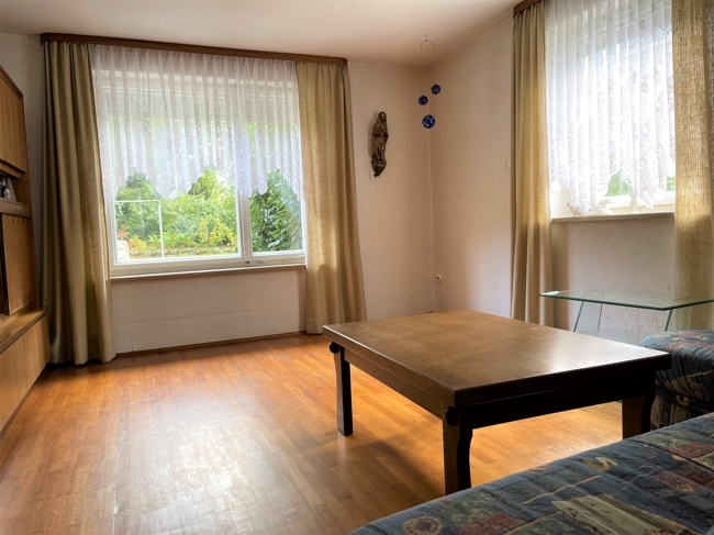 Durch die Hanglage gibt es auf der Straßenseite im Untergeschoss Wohnräume die evtl. auch als Einliegerwohnung oder Homeoffice genutzt werden könnten. 1980 wurde die Garage überbaut. Ansonsten ist das Haus weitgehend im unrenovierten Originalzustand.