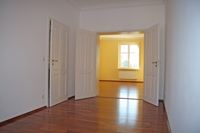 Edles Altbau-Ambiente durch Parkett, weiße Holzflügeltüren, hohe Räume, Stuck, Sprossenfenster...