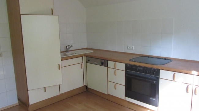 Helle 2-Zimmer-Küche-Bad-Wohnung; Flur; Zwei Zimmer; Wohnküche mit Einbauküche; Bad renoviert mit Fenster, Dusche und WC; Abstellraum; Keller; Stellplatz