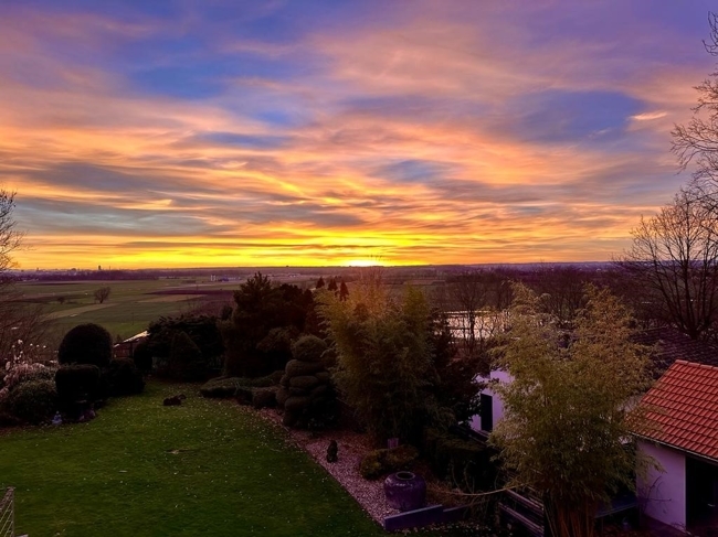 Großzügiger, heller, offener Flur mit Garderobe. Stehtisch mit Barhockern; Schreiner- Küche mit Gastro Geräten (Gaggenau, Liebherr) wie riesiger Edelstahl Dunstabzugshaube, Gasherd, Gas Wok, Lavagrill, überbreites Ofenrohr, Mikrowelle, Dampfgarer, Bierzapfanlage, Edelstahlkühlschrank usw. Die Küche wurde nachträglich angebaut und ragt als Glaskubus aus der Hausfassade heraus. Eine Glasseite der Küche kann man zum Balkon hin öffnen. Offener Essbereich mit Panoramafenstern und Einbauessecke; Terrassentüre in den Wintergarten mit Esstisch, Beistellholzofen (nur bis Mitte 2024 nutzbar), Terrassentüre auf die Südterrasse;