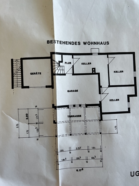 UG: innenliegende Garage, Zimmer, Duschbad mit WC und Fenster, Kellerraum, Heizung.