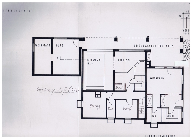 Waschkeller, kleines Bad, Heizungsraum, Wellness Bereich mit Hallenbad, Whirlpool, Sauna und Dusche, Büro mit separatem Eingang und anschließender Werkstatt; Einliegerwohnung mit separatem Eingang kleiner Küche und Bad