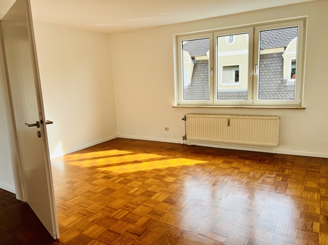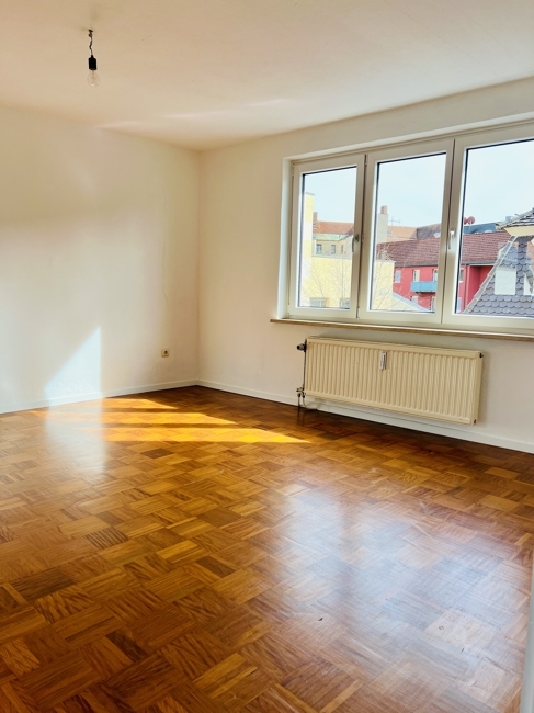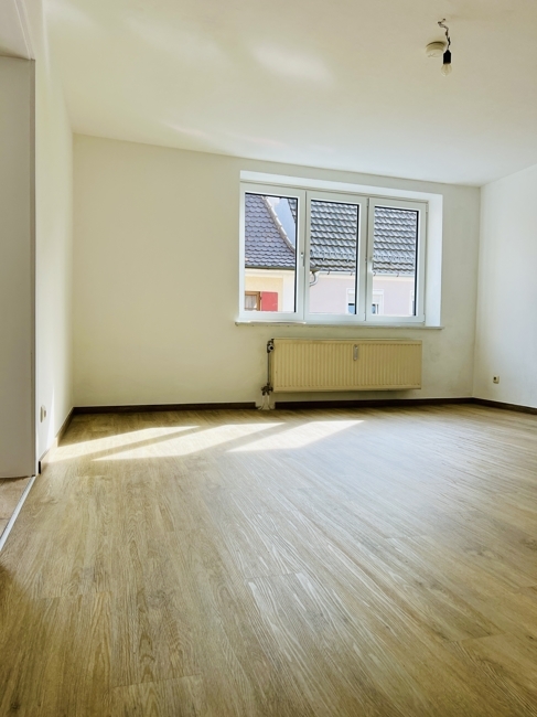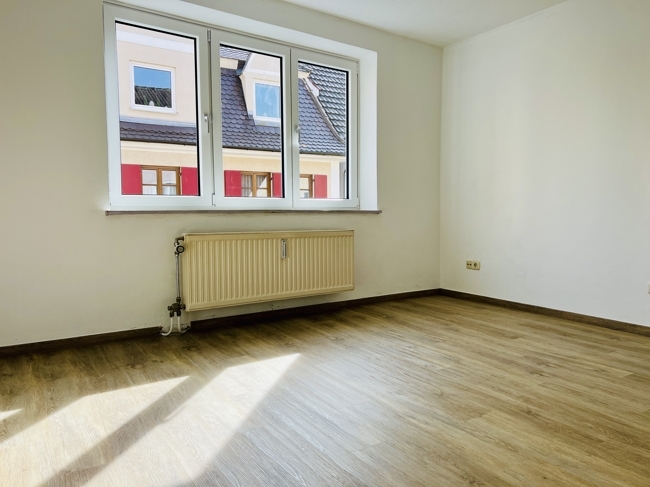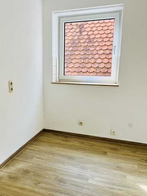 In die Wohnung gelangt man über eine überdachte Außentreppe im Innenhof. In der Wohnung gibt es ein großes, neu renoviertes Bad mit Wanne, WC, Waschbecken, Waschmaschinenanschluss sowie großem Fenster. Es gibt eine separarte Küche sowie mehrere Zimmer in unterschiedlichen Größen. Die Wohnung erstreckt sich über zwei Etagen mit innenliegender Treppe. Die Wohnung ist frei und frisch renoviert. Die Fenster wurden 2023 erst in moderne Kunststofffenster getauscht.