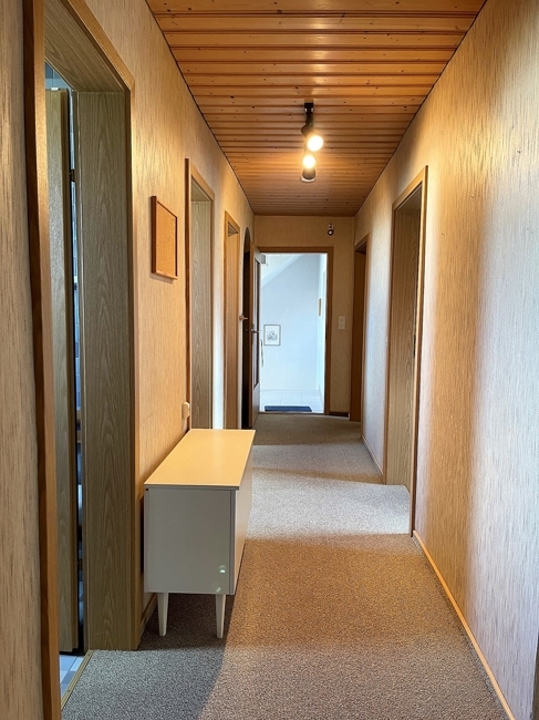 Windfang mit Treppe ins OG und Türe in den Keller.
